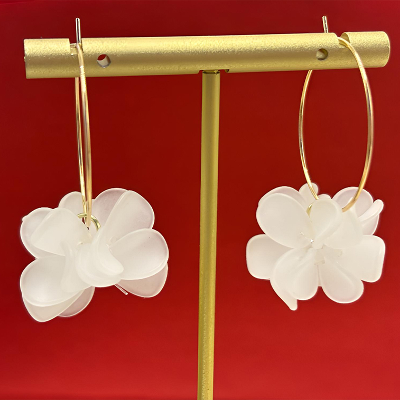 Elegant Romantic Sweet Flower Acrylic Hoop White Earrings